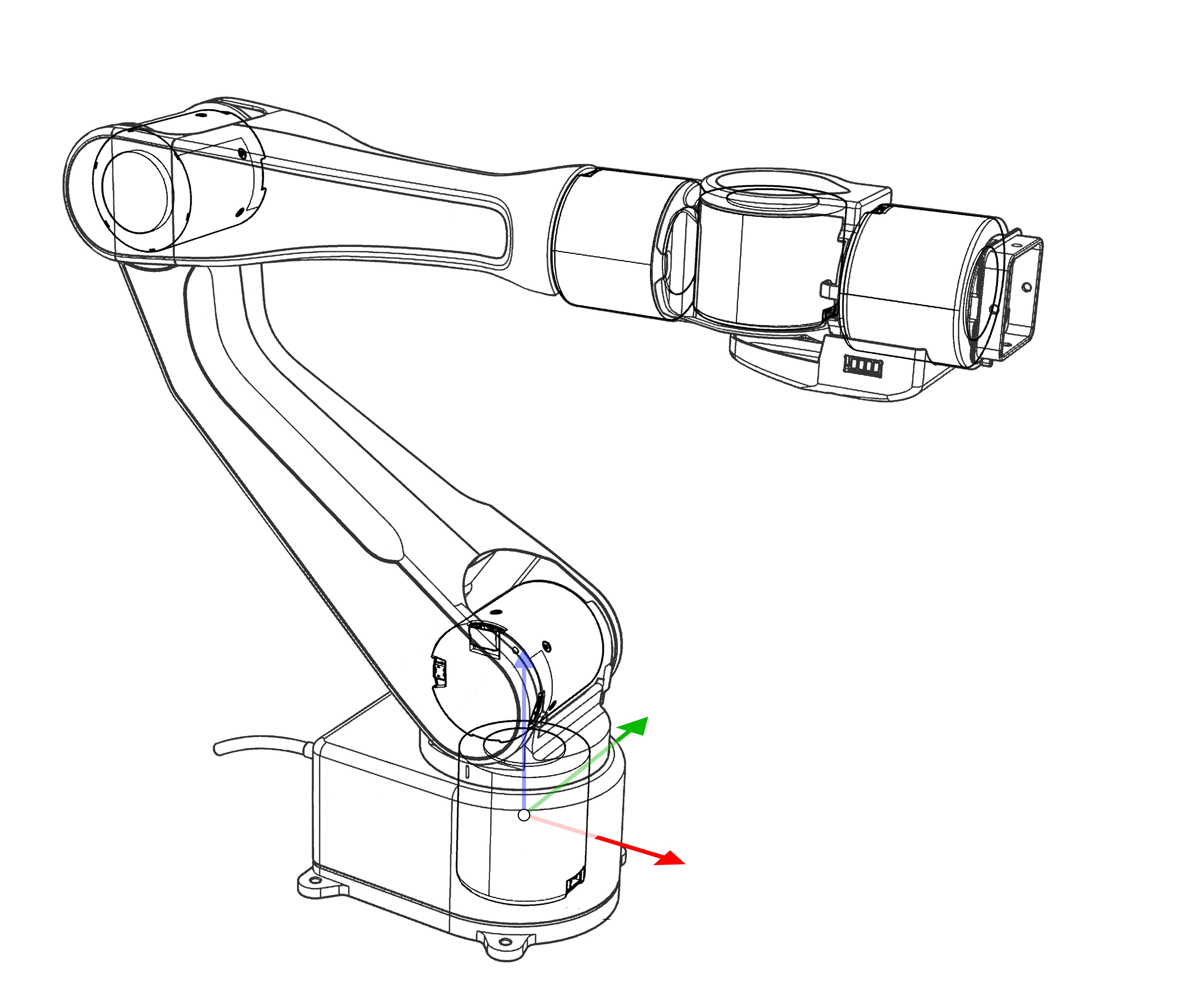 TOOL SIGNAL INTERFACE: Internal harness routed through the arm to USB-2 on the Base Board; keeps the exterior clean and eliminates external cable swing.